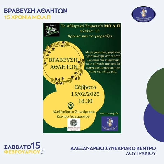 Το αθλητικό σωματείο ΑΣ.ΜΟ.Λ.Π γιορτάζει 15 χρόνια λειτουργίας και σας καλεί στην κοπή της πίτας για το 2025.