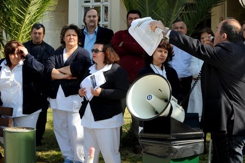 2ον. Τοπικός τηλεοπτικός σταθμός μας ζήτησε κάποιες δηλώσεις, με αφορμή τις πρόσφατες εκλογές στο Σύλλογό μας. Κι ενώ περιμέναμε να έρθει ο δημοσιογράφος (και μάλιστα εκτός των κτιριακών εγκαταστάσεων του νοσοκομείου, όπως είχαμε συνεννοηθεί), μαθαίνουμε ότι ο κος Πατσογιάννης, ενημερωμένος προφανώς από κάποιον “καλοθελητή”, βγήκε να τον προϋπαντήσει και του απαγόρευσε να μας πλησιάσει. Έσυρε τον άνθρωπο στο γραφείο της κας Διοικήτριας, όπου του ξεκαθάρισαν ότι θα παίρνει συνέντευξη μόνο από τους αρεστούς στη διοίκηση, κατ’ αποκλειστικότητα!!!