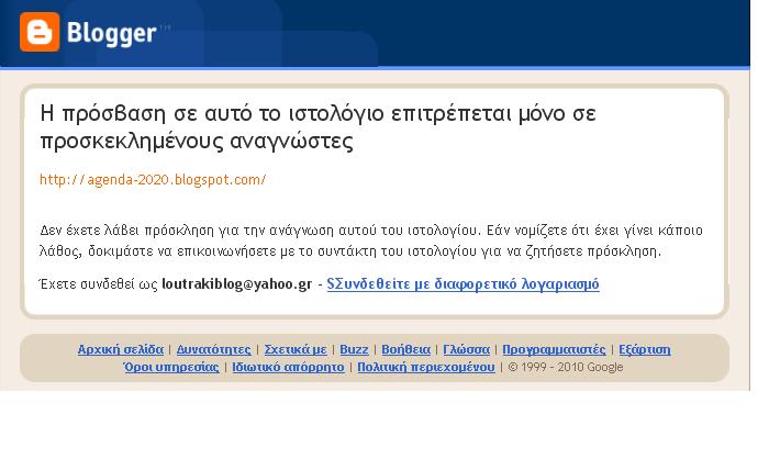 Αν προσπαθήσει κανείς να μπει στο blog που διατηρούσε μέχρι πρότινος ο Δημήτρης Γέρου (www.agenda-2020.blogspot.com), θα δει ότι πλέον υπάρχει μήνυμα που επιτρέπει την πρόσβαση μόνο σε προσκεκλημένους αναγνώστες, κάτι που πρακτικά σημαίνει ότι πλέον δεν είναι στον “αέρα” του διαδικτύου.