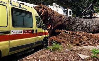 Τουλάχιστον 20 άτομα τραυματίστηκαν εκ των οποίων τα τρία σοβαρά όταν πεύκο ύψους 30 μέτρων έπεσε κατά τη διάρκεια πανηγυριού στον προαύλιο χώρο Ιερού Ναού της Παναγίας στο Κιάτο Κορινθίας.