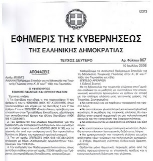 ΦΕΚ Αρ. Φύλλου 867, 10 Ιουλίου 2006