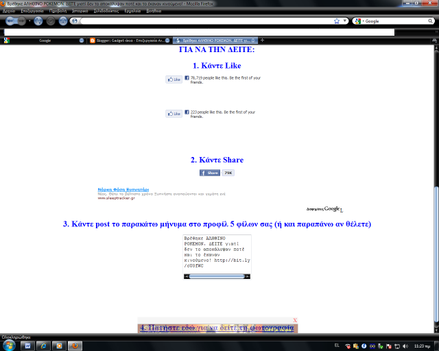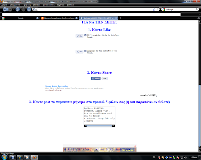 Ωραία, εδώ βλέπουμε ο δημιουργός να μας παροτρύνει να κάνουμε Like, Share και οτιδήποτε για να διαδώσουμε τη συγκεκριμένη σελίδα και πιο κάτω να λέει “πατήστε εδώ” για να δείτε τη φωτογραφία.