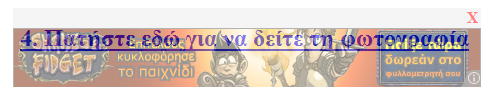 Εσείς αυτό που πρέπει να κάνετε είναι να ΜΗΝ διαδώσετε τη σελίδα, να ΜΗ συνεχίζετε αυτήν την μάστιγα τέτοιου είδους διαφημίσεων και απλά να πατήσετε το μικρό X που υπάρχει στην καμουφλαρισμένη διαφήμιση. Με αυτό τον τρόπο η διαφήμιση θα εξαφανιστεί και θα σας αποκαλυφθεί το link για να δείτε τη φωτογραφία χωρίς να κερδίσει ο δημιουργός ούτε ένα Cent. Στη δικιά μας περίπτωση θα δείτε αυτό: