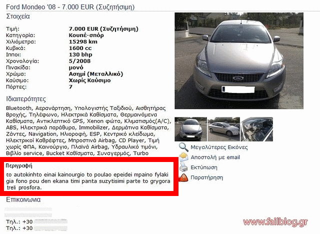 Χωρίς κατηγορία Δείτε γιατί πουλάει ο άνθρωπος το αυτοκίνητό του… 22 Σεπτεμβρίου 2010, 21:50 FacebookTwitterEmailCopy URLΤυπώνω - Advertisement - Μπορείτε να φαντάστείτε για ποιόν λόγο κάποιος έβαλε αγγελία για να πουλήσει το αμάξι του ; - Advertisement - ΕΤΙΚΕΤΕΣnotag ΑΦΗΣΤΕ ΜΙΑ ΑΠΑΝΤΗΣΗ Ακύρωση απάντησης Σχόλιο: εισάγετε το σχόλιό σας! Όνομα: παρακαλώ εισάγετε το όνομά σας εδώ Email: έχετε εισάγει εσφαλμένη διεύθυνση ηλεκτρονικού ταχυδρομείου! παρακαλώ εισάγετε εδώ την ηλεκτρονική σας διεύθυνση Ιστοσελίδα: αποθηκεύστε το όνομα, το ηλεκτρονικό ταχυδρομείο και τον ιστότοπό μου σε αυτό το πρόγραμμα περιήγησης για την επόμενη φορά που θα σχολιάσω. Δ Δείτε ακόμα Λουτράκι Το Homo educandus Αγωγή στην Ακαδημία Αθηνών! Κορινθία Ξυλόκαστρο: Κλείνει για 15 μέρες το Κοινωνικό Παντοπωλείο ΤΟΠΙΚΑ Το Διεθνές Φεστιβάλ Ντοκιμαντέρ Πελοποννήσου στο Ξυλόκαστρο! ΤΟΠΙΚΑ Κόρινθος: Εθιμοτυπικές επισκέψεις στον Σεβ. Μητροπολίτη μας Ελλάδα Λίγα λόγια για τον αυριανό καιρό…… Σχετικά άρθρα Λουτράκι Συμπλοκή μαθητών στο Λύκειο Λουτρακίου Λουτράκι Τιμή για το Λουτράκι η πρώτη λειτουργία του σεβ. Μητροπολίτη Παύλου μετά την Κόρινθο (ΦΩΤΟ-ΒΙΝΤΕΟ) Κορινθία Επόμενη Μέρα: Όταν η Δημοτική Αρχή επιλέγει την πόλωση αντί της θεσμικής σοβαρότητας Κυριότερες ειδήσεις ΕΠΙΜΕΛΗΤΗΡΙΟ ΚΟΡΙΝΘΙΑΣ: Kαμπάνια για το κρασί χωρίς να το γνωρίζουν οι οινοποιοί!