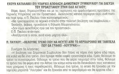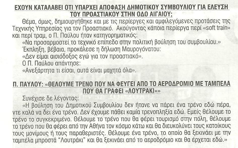 Ο Παυλου παλευε ολη την τετραετια και δεν θυμαται τα προβληματα μονο προεκλογικα τον προαστιακο τον εχει φερει θεμα στο συμβουλιο πανω απο 5 φορες και ενα σωρο αλλα θεματα οσοι παρακολουθουν ξερουν