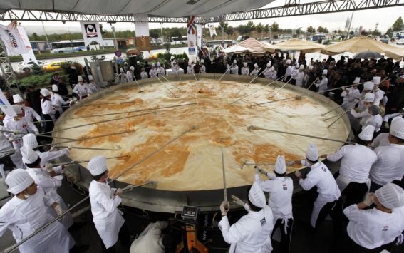 Η ομελέτα τηγανίστηκε σε ένα τεράστιο τηγάνι, με διάμετρο δέκα μέτρων, μπροστά από εμπορικό κέντρο στην Άγκυρα. Την εκδήλωση οργάνωσε η Ένωση Παραγωγών Αυγών και στο μαγείρεμα της ομελέτας συμμετείχαν 65 μάγειρες που έσπασαν 110.010 αυγά μέσα στο γιγάντιο τηγάνι ενώ χρειάστηκαν δυόμισι ώρες για να ψηθεί.