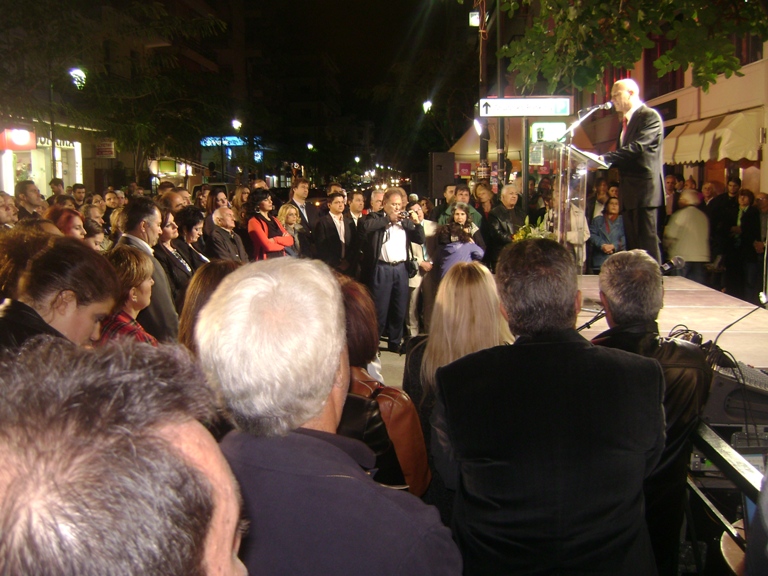 Η συμμετοχη του κοσμου ηταν μικρη διοτι δεν χρειαζεται να ακουσει λογια,οταν καποιος εχει διατελεσει δημαρχος,ο κοσμος κρινει απο την εως τωρα συμπεριφορα του και γενικοτερα το εργο του,αλλα και την ομαδα που διαθετει ως εργαλειο για το μελλον.