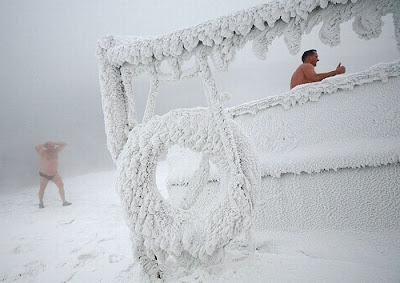 Τα μέλη ενός τοπικού συλλόγου χειμερινών κολυμβητών της πόλης Krasnoyarsk, πήγαν για μπάνιο στο παγωμένο ποτάμι Yenisei ενώ η θερμοκρασία του αέρα ήταν στους -36 βαθμούς κελσίου.