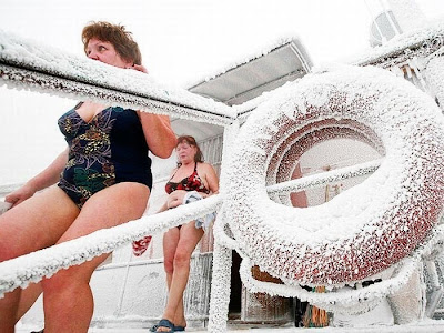Τα μέλη ενός τοπικού συλλόγου χειμερινών κολυμβητών της πόλης Krasnoyarsk, πήγαν για μπάνιο στο παγωμένο ποτάμι Yenisei ενώ η θερμοκρασία του αέρα ήταν στους -36 βαθμούς κελσίου.