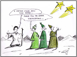 Το άστρο της Βηθλεέμ φέτος οδηγεί τη χώρα στο ΔΝΤ και, ως εκ τούτου, τα χριστουγεννιάτικα δώρα μειώθηκαν κάθετα, όπως και οι μισθοί…
