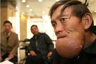 Ο 47χρονος πλήττεται σαφώς από μια πολύ σπάνια ασθένεια. Το πηγούνι του είναι πρησμένο σε τέτοιο μέγεθος που δεν μπορεί να κλείσει σχεδόν καθόλου το στόμα του. Το φαγητό και το ποτό είναι τα βασανιστήρια του.