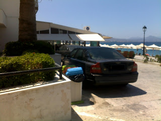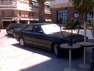Σκέπασε τα λάστιχα με χαρτόκουτο και χαρτοταινία, για να μην χαλάσουν υποτίθεται από τον ήλιο ο οποίος ανατέλλει από την άλλη πλευρά και η δύση καλύπτεται από την πολυκατοικία ??? 22-7-2011 !!!!
