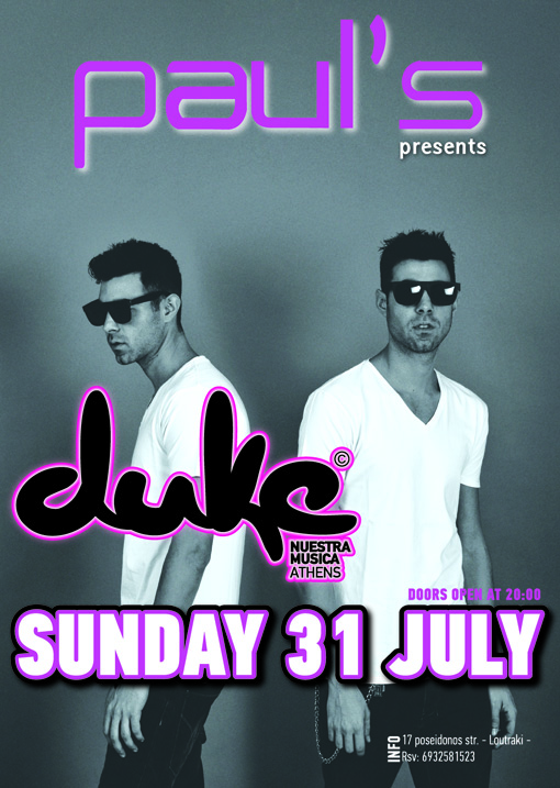 Ο Dj Duke από το 2004 έχει συνεργαστεί με τα μεγαλύτερα μαγαζιά της Αθήνας όπως το Danza ,το Plus X ,το Balux ,το Dybbuk , το Guzel και το Αστρα της Μυκόνου .
