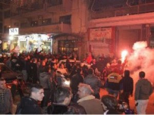 Οι φίλαθλοι έχουν αποκλείσει το κέντρο και δεν αφήνουν τα πυροσβεστικά οχήματα να πλησιάσουν τις εστίες της φωτιάς.