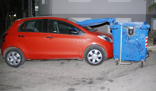 Βέβαια και οι κάδοι κίνδυνος είναι πλέον για τα αμάξια, ελπίζουμε να μην έχει προκληθεί ζημιά στο αμάξι του άτυχου φίλου μας.