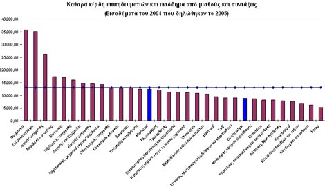 Σύμφωνα με τον παραπάνω πίνακα7 το 2005 οι μισθωτοί παρουσίασαν έσοδα μεγαλύτερα από τους τραγουδιστές, τους πολιτικούς μηχανικούς, τους ξενοδόχους, τους ηθοποιούς και τους ταξιτζήδες.