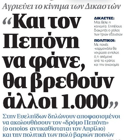 Αντίστοιχα με το έργο του Ντι Πιέτρο απέναντι στην Μαφία, που βγήκε νικητής. Εάν τολμήσουν να ακυρώσουν τον Πεπόνη για να φυγαδεύσουν τους δικούς τους, να είναι σίγουροι ότι θα ανάψουν το φυτίλι της ανεξέλεγκτης κοινωνικής έκρηξης αφού κάθε ελπίδα για λειτουργία των θεσμών θα έχει εξαφανιστεί.
