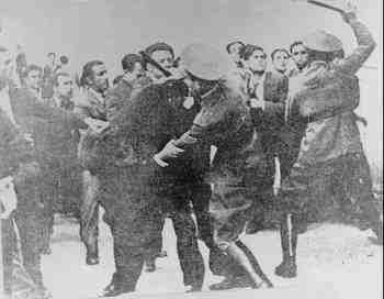 Μέσα σε λίγη ώρα, τα νέα είχαν φτάσει σε κάθε σημείο της πόλης κι ο κόσμος κατέβαινε από τις συνοικίες προς το κέντρο για να βοηθήσει τους αγωνιζόμενους εργάτες. Οι αρχές τρομοκρατήθηκαν. Ο Διοικητής της φρουράς Θεσσαλονίκης έδωσε διαταγή στο στρατό να χτυπήσει τους διαδηλωτές αλλά οι φαντάροι δεν υπάκουσαν. Τρεισήμισι ώρες κράτησαν οι οδομαχίες και τελικά οι διαδηλωτές υποχώρησαν. Πολλοί εργάτες είχαν τραυματιστεί, αλλά η αγανάκτηση του λαού ήταν στο κατακόρυφο. Το βράδυ, πολλά σωματεία της Θεσσαλονίκης (αυτοκινητιστές, λιμενεργάτες, οικοδόμοι, τροχιοδρομικοί κ.ά.) κήρυξαν απεργία.