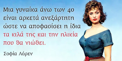 Μια γυναίκα πάνω από τα σαράντα δεν θα σε ξυπνήσει στη μέση της νύχτας για να σε ρωτήσει ‘Τι σκέφτεσαι;’ Δεν την νοιάζει τι σκέφτεσαι. Εάν μια γυναίκα πάνω από τα σαράντα δεν θέλει να παρακολουθήσει τον αγώνα, δεν θα καθίσει να παραπονιέται αλλά θα βρει κάτι άλλο να κάνει που θέλει. Kαι συνήθως είναι πιο ενδιαφέρον. Μια γυναίκα πάνω από τα σαράντα ξέρει τον εαυτό της καλά ώστε να είναι σίγουρη ποια είναι, τι θέλει και από ποιον. Ελάχιστες γυναίκες πάνω από τα σαράντα θα νοιαστούν τι γνώμη έχεις εσύ για αυτές ή για αυτά που κάνουν.