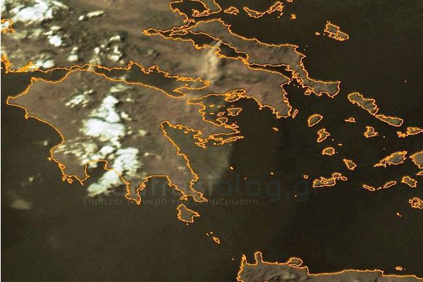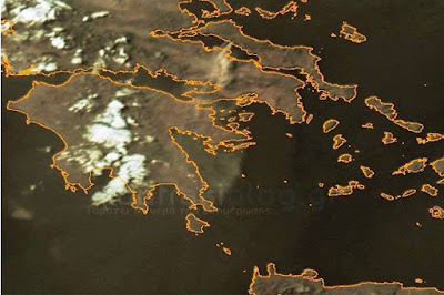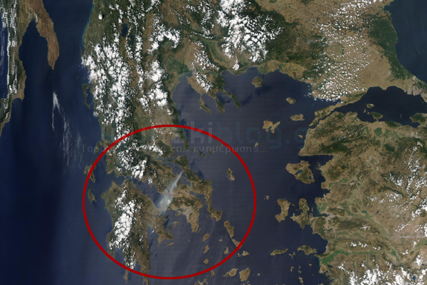 Η φωτογραφία από τον δορυφόρο της NASA δείχνει τον καπνό από την πυρκαγιά της Εύβοιας, που εξαπλώθηκε πάνω από το Νομό Βοιωτίας και έφτασε μέχρι το Λουτράκι.