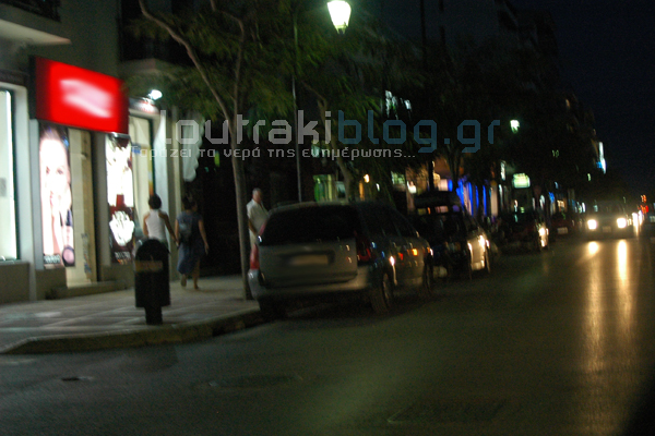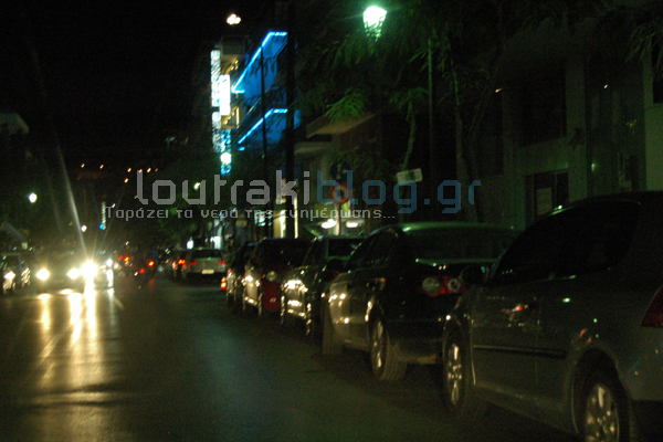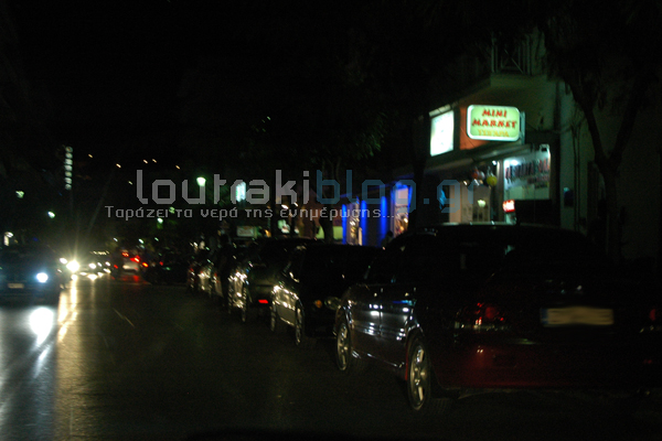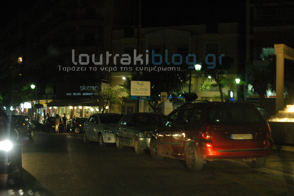 Σάββατο βράδυ στο Λουτράκι. Η δεξιά πλευρά του δρόμου, έχει καταληφθεί από αυτοκίνητα. Τα σχόλια δικά σας.