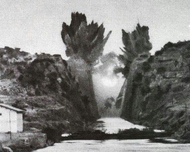 Σαν Σήμερα 3 Οκτωβρίου του 1944, οι Ναζί κατά την αποχώρησή τους από την Πελοπόννησο ανατινάζουν τη διώρυγα της Κορίνθου, αφού πρώτα ρίχνουν μέσα βαγόνια τραίνου γεμάτα με ιταλούς αιχμαλώτους, με αποτέλεσμα να καταπέσουν 60.000 κυβικά μέτρα χώμα. Οι εργασίες εκφράξεως θα κρατήσουν 5 χρόνια…