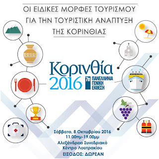 Στο πλαίσιο της έκθεσης “Κορινθία 2016”, διοργανώνεται παράλληλη εκδήλωση – ημερίδα Τουρισμού με θέμα “ Οι Ειδικές Μορφές Τουρισμού για την Τουριστική Ανάπτυξη της Κορινθίας»…