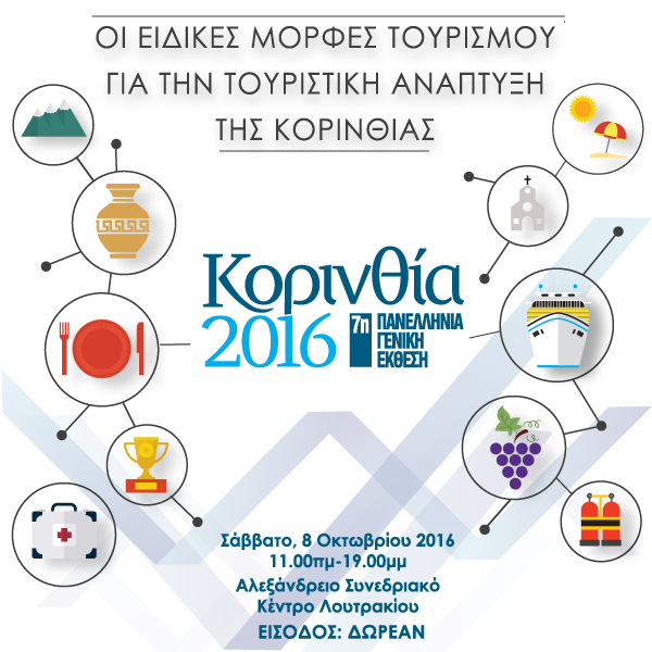 Στο πλαίσιο της έκθεσης “Κορινθία 2016”, διοργανώνεται παράλληλη εκδήλωση – ημερίδα Τουρισμού με θέμα “ Οι Ειδικές Μορφές Τουρισμού για την Τουριστική Ανάπτυξη της Κορινθίας»…
