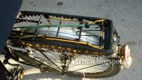 Με την δεξιοτεχνία του και ως επιπλοποιός στόλισε το ποδήλατό του έτσι ώστε να αποκτήσει ξεχωριστή προσωπικότητα. Να το κάνει ξεχωριστό.