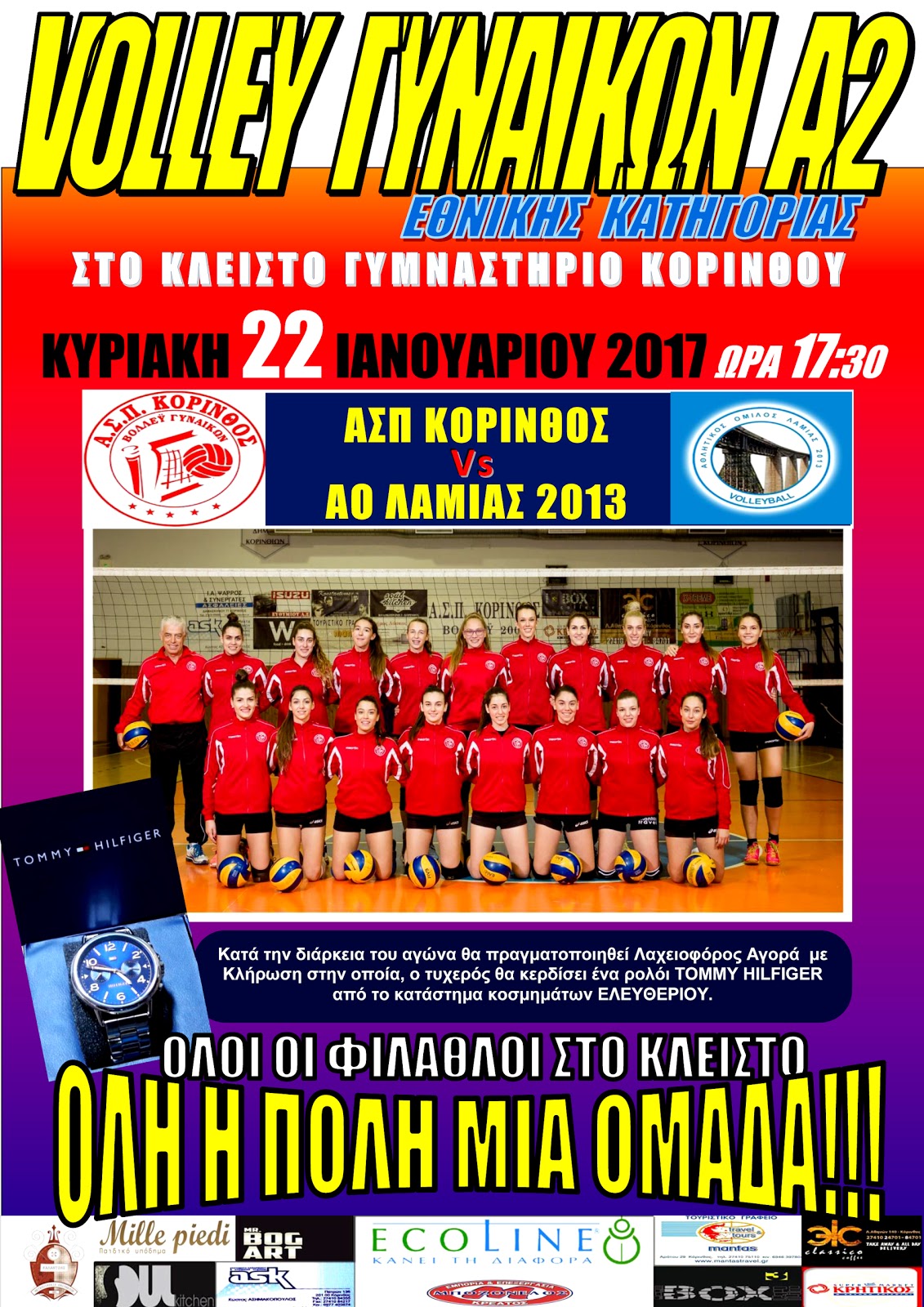 η οποία στο πλαίσιο της 8ης αγωνιστικής του Β’ ομίλου της Α2 Εθνικής κατηγορίας, θα υποδεχθεί την Κυριακή 22 Ιανουαρίου στις 17.30 στο κλειστό Γυμναστήριο της Κορίνθου την ομάδα του Α.Ο. ΛΑΜΙΑΣ 2013.