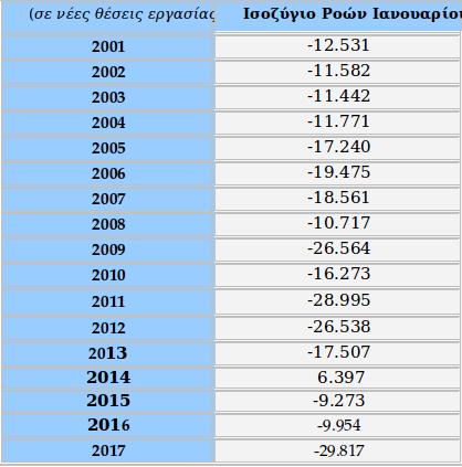 Τα στοιχεία του συστήματος ΕΡΓΑΝΗ για τη ροή μισθωτής απασχόλησης του Ιανουαρίου, που δημοσίευτηκαν σήμερα μετά από αρκετές ημέρες καθυστέρησης, δείχνουν οι πρόκειται για έναν μήνα με τις χειρότερες επιδόσεις από το 2001 μέχρι σήμερα.
