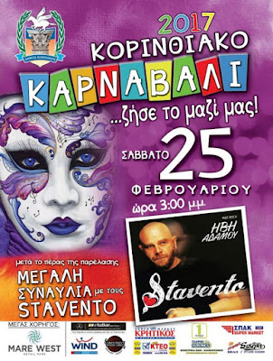 Ο Δήμος Κορινθίων σε συνεργασία με το Κέντρο Πολιτισμού Αθλητισμού & Περιβάλλοντος διοργανώνουν και φέτος το Σάββατο στις 25 Φεβρουαρίου 2017 στις 3.00 μ.μ. μεγάλη καρναβαλική παρέλαση με την συμμετοχή χιλιάδων καρναβαλιστών και αρμάτων….