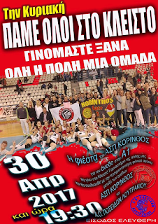 Την Κυριακή ΠΑΜΕ ΟΛΟΙ ΣΤΟ ΚΛΕΙΣΤΟ ΓΙΝΟΜΑΣΤΕ ΞΑΝΑ ΟΛΗ Η ΠΟΛΗ ΜΙΑ ΟΜΑΔΑ για να τιμήσουμε τις θριαμβεύτριες, τον προπονητή και όλο το Team του Α.Σ.Π. ΚΟΡΙΝΘΟΣ, για την άνοδο τους στην Α1 Εθνική κατηγορία, που αποτελεί την μεγαλύτερη επιτυχία για τον τοπικό αθλητισμό και την πόλη της Κορίνθου για τα τελευταία 24 χρόνια!