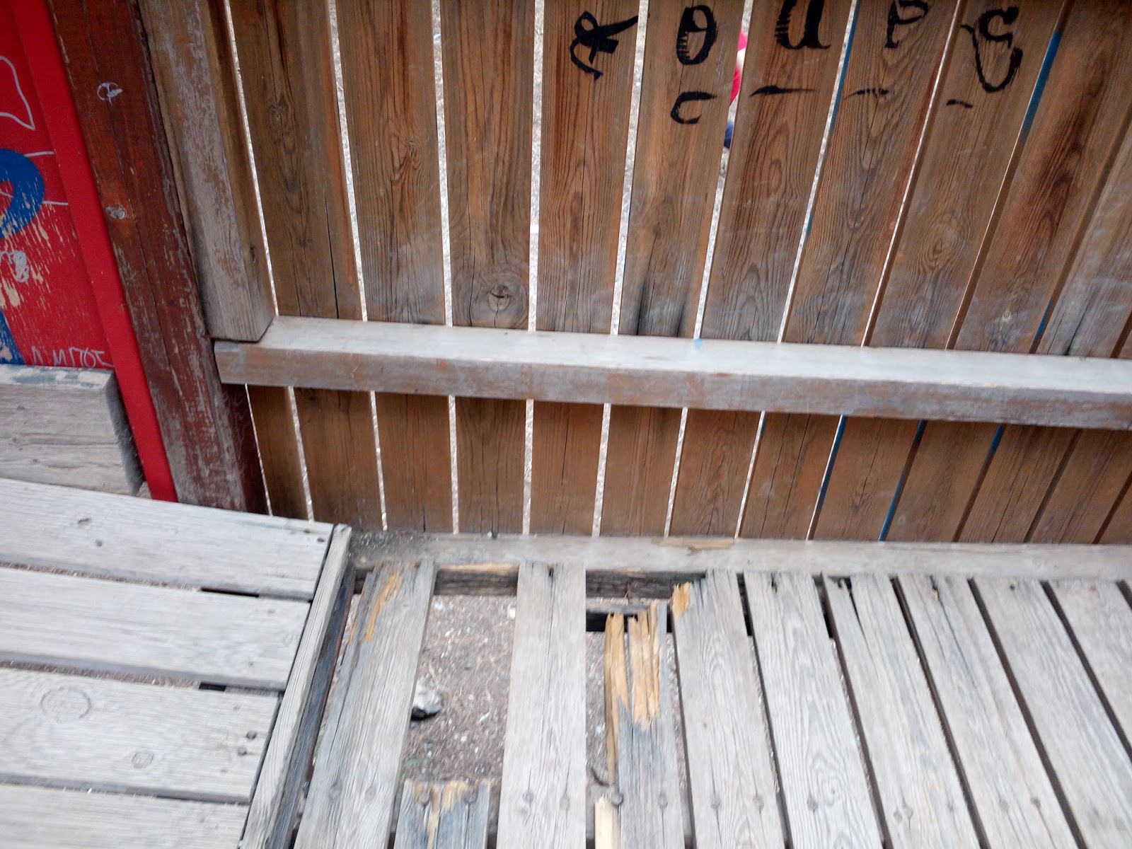 10. 10.32 ειναι λογος για να μην φτιαχνονται θες να μας πεις επειδη θα τα ξαναχαλασουν …!εδω βλεπουμε κ φυσικη φθορα ..αβαφτα ξυλα .αβαφτα σιδερα που αν σκουριασουν ειναι επικινδυνα …κακοτεχνιες ..η προκα πως βρεθηκε να εξεχει εκει ?την τραβηξε 5χρονο?