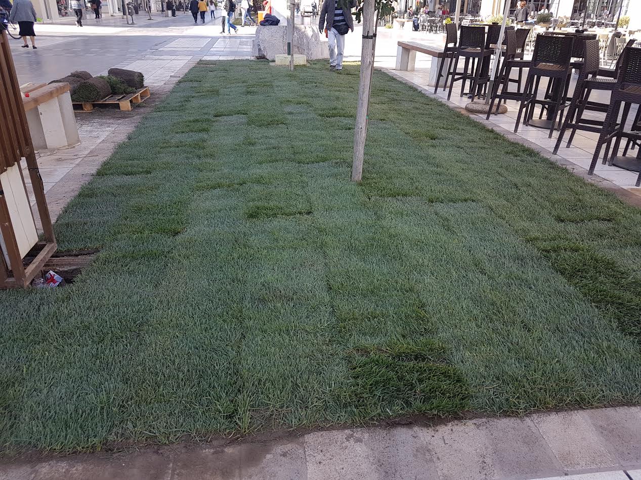 Κατεργασία του εδάφους με φρέζα και ομοιόμορφη διάστρωση του , από τους εργαζόμενους του τμήματος πρασίνου.