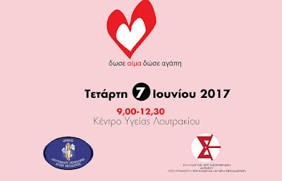 Σας προσκαλούμε να συμμετάσχετε στην εθελοντική αιμοδοσία που θα πραγματοποιηθεί την Τετάρτη 7 Ιουνίου, από τις 9.00 το πρωί έως τις 12.30 το μεσημέρι, στο Κέντρο Υγείας Λουτρακίου…