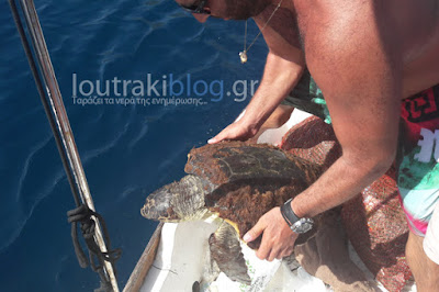 Αμέσως, ειδοποιήθηκε το Λιμενικό Σώμα και ο Σύλλογος για την Προστασία της Θαλάσσιας Χελώνας, ΑΡΧΕΛΩΝ.