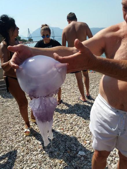 Δείτε τη μέδουσα-γίγα (για τα δεδομένα των ελληνικών θαλασσών) που… κολυμπούσε μαζί με τους λουόμενους σε μικρή απόσταση από τη γέφυρα Ρίου-Αντιρρίου:
