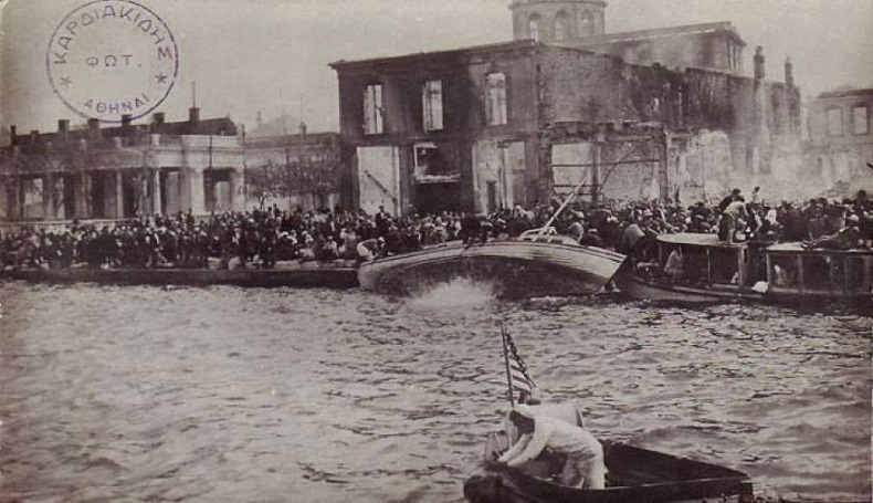 Φύγαμε από το χωριό με την οπισθοχώρηση και πήγαμε σ’ ένα προάστιο που το λέγαν Καρατάσι. Από εκεί πληρώσαμε σ’ ένα γαλλικό φορτηγό τριακόσιες λίρες και μας μετέφερε στη Σμύρνη. Είχαμε σπίτι στη Σμύρνη δικό μας. Όταν οι Τούρκοι έβαλαν φωτιά, μαζί με όλους τους Έλληνες που έρχονταν από την ενδοχώρα, άλλος με ζώα, άλλος με τα πόδια, καταλήξαμε στην προκυμαία. Τι να δεις εκεί. Κόσμος… Μιλιούνια. Δώδεκα μέρες περιμέναμε για να μπούμε στα βαπόρια. Πού να πάρεις σειρά. Γινόταν χαμός. Κάθε πενήντα μέτρα ήταν και μια στρατιωτική τουρκική ζώνη. Σ’ έψαχναν οι Τούρκοι κι ό,τι έβρισκαν απάνω σου, δακτυλίδια, λίρες, χρήματα, όλα σού τα έπαιρναν. Η σκάλα που οδηγούσε στα καράβια ήταν ξύλινη. Έβλεπες παιδιά, καθώς έκαναν να περάσουν, να παραπατάν και να πέφτουν στη θάλασσα. Έσκουζαν οι μανάδες «Το παιδί μου», ποιος να σ’ ακούσει; Ο κόσμος από πίσω έσπρωχνε. Πάει το παιδί, πνιγόταν. Κάνας δεν έδινε σημασία. Ας αφήσουμε που οι Τούρκοι πυροβολούσαν τις βάρκες. Όποιος έμπαινε στις βάρκες να φύγει ήταν χαμένος. Γιομάτη η θάλασσα από πτώματα.