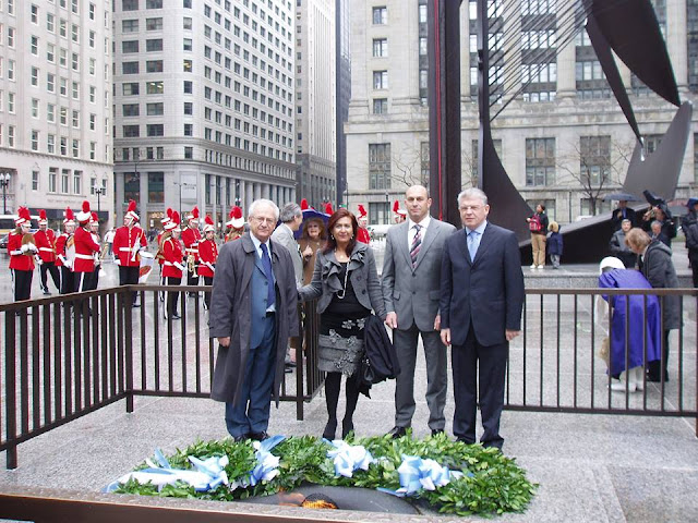| Ο Δήμαρχος με τον πρόεδρο Δ. Γεωργακόπουλο και στελέχη της ελληνοαμερικάνικης Ομοσπονδίας στο Σικάγο |