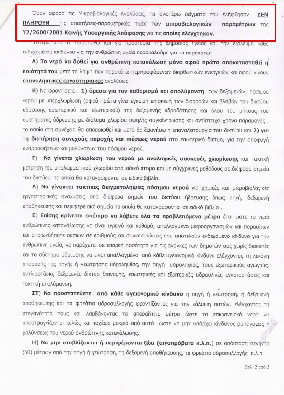 Αυτο που δεν καταλαβαμε ειναι οτι αφου η περιφερεια έδωσε εντολη να γινουν καποιες ενέργειες μεταξυ αυτων και χλωριωσεις,γιατι ενω εγιναν οπως αναφερεται στα εγγραφα,εσεις παλι παραπονιοσαστε λεγοντας οτι εχει χλωριο το νερο;;;;
