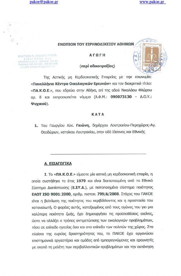 Κατατέθηκαν στην Εισαγγελία Αθηνών, Αγωγές κατά του Δημάρχου Λουτρακίου Γκιώνη Γεωργίου και του Προέδρου της ΔΕΥΑΛ Θυμή Φιλίππου…