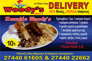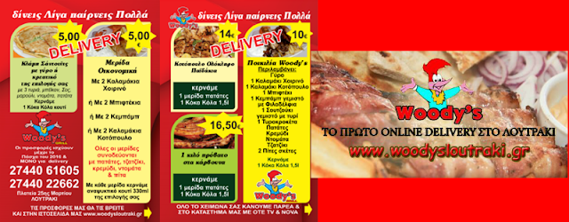 Επισκεφθείτε το εστιατόριο Woodys στο Λουτράκι ή καθίστε αναπαυτικά στον καναπέ σας και παραγγείλτε τα αγαπημένα σας πιάτα !..