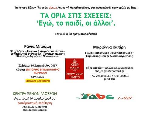 Διοργάνωση : Abc LAB – Κέντρο Ξένων Γλωσσών – Λαμπρινή Μανωλοπούλου