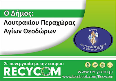 Η RECYCOM σε μια ΝΕΑ ΣΥΝΕΡΓΑΣΙΑ με το Δήμο Λουτρακίου – Περαχώρας – Αγίων Θεοδώρων ( Δήμος Λουτρακίου – Περαχώρας – Αγίων Θεοδώρων ) ,θα ανακτά τα είδη, που είτε από συνήθεια είτε από ανάγκη, κατέληγαν μέχρι σήμερα στα σκουπίδια και τις χωματερές. Στη συνέχεια θα τα επαναθέτει σε κυκλοφορία με ένα σύγχρονο τρόπο. Θα τοποθετηθούν μέσα στις επόμενες μέρες συνολικά 26 κάδοι ανακύκλωσης ενδυμάτων – υποδημάτων.