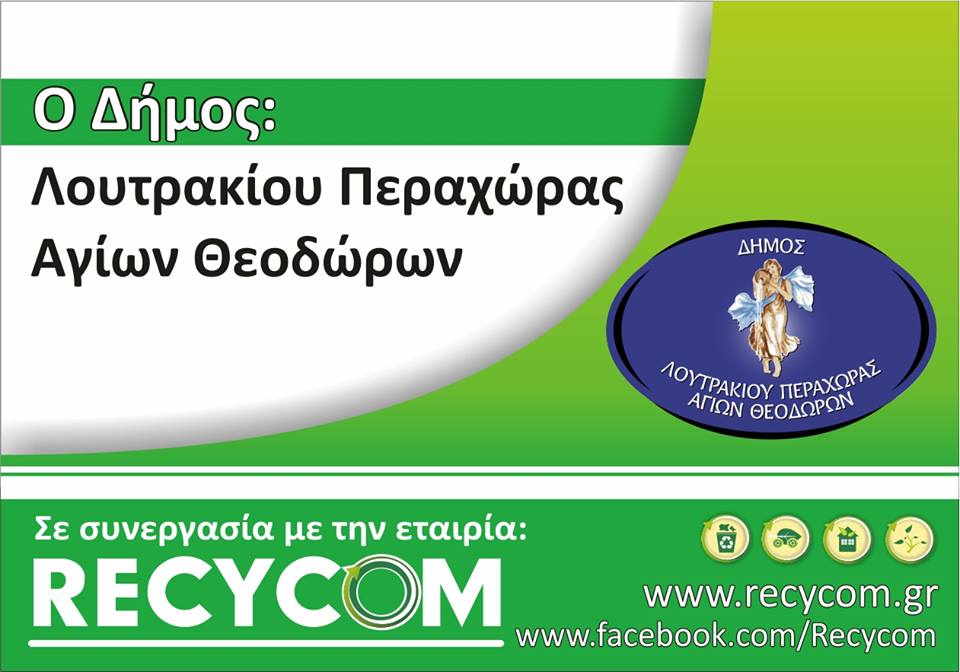 Η RECYCOM σε μια ΝΕΑ ΣΥΝΕΡΓΑΣΙΑ με το Δήμο Λουτρακίου – Περαχώρας – Αγίων Θεοδώρων ( Δήμος Λουτρακίου – Περαχώρας – Αγίων Θεοδώρων ) ,θα ανακτά τα είδη, που είτε από συνήθεια είτε από ανάγκη, κατέληγαν μέχρι σήμερα στα σκουπίδια και τις χωματερές. Στη συνέχεια θα τα επαναθέτει σε κυκλοφορία με ένα σύγχρονο τρόπο. Θα τοποθετηθούν μέσα στις επόμενες μέρες συνολικά 26 κάδοι ανακύκλωσης ενδυμάτων – υποδημάτων.
