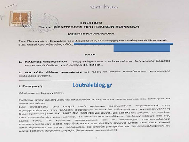 Loutrakiblog: Kύριε Σταμάτη πληροφορηθήκαμε πως καταθέσατε μήνυση ενώπιον του Εισαγγελέα Πρωτοδικών Κορίνθου για τα όσα συνέβησαν στον διεθνή αγώνα κολύμβησης Cross The Euro Canal στον Ισθμό της Κορίνθου