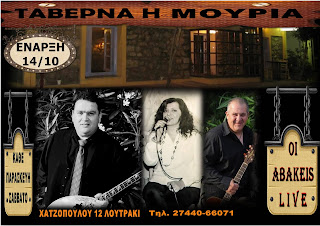 Oι αγαπημένοι μας ”Aβακείς” θα μας ταξιδέψουν μουσικά την φετινή σεζόν με παλιά ποιοτικά ακούσματα στην ταβέρνα Μουριά…