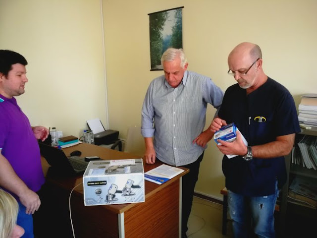 Αυτή τη φορά οι δύο Σύλλογοι δώρισαν πιεσόμετρα και ένα χρήσιμο εξάρτημα για την ορθοπεδική Κλινική του κέντρου υγείας Κιάτου , εξοπλισμό που παρέλαβε ο διευθυντής Τάσος Χωρέμης.