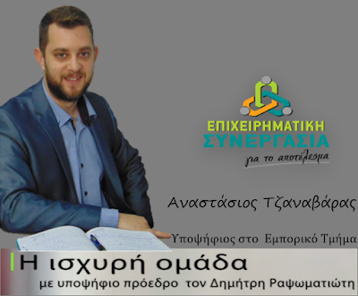 Για ένα Επιμελητήριο που θα στηρίζει τους επαγγελματίες και θα σέβεται τον αγώνα τους, κάνει λόγο ο υποψήφιος σύμβουλος για το Δ.Σ. του Επιμελητηρίου Κορινθίας με τον συνδυασμό ΕΠΙΧΕΙΡΗΜΑΤΙΚΗ ΣΥΝΕΡΓΑΣΙΑ για το ΑΠΟΤΕΛΕΣΜΑ του υποψηφίου προέδρου Δημήτρη Ραψωματιώτη, Αναστάσιος Τζαναβάρας….